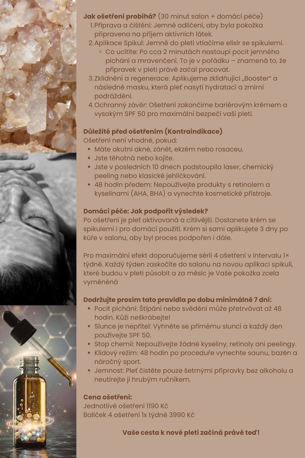 Séra budou zapracovány do pleti pomocí přístrojů dle požadovaného výsledku.